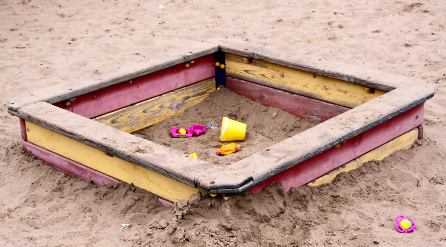 По новым ГОСТам, введенным три года назад, все те же песочницы не должны быть деревянными и с острыми углами. Кроме того, песочницу окружают четыре пня, которым, опять же, по новым требованиям здесь не место. И устанавливать детские конструкции можно только на спец. покрытия, а это значит, что без предварительных земляных работ в данном случае не обойтись.