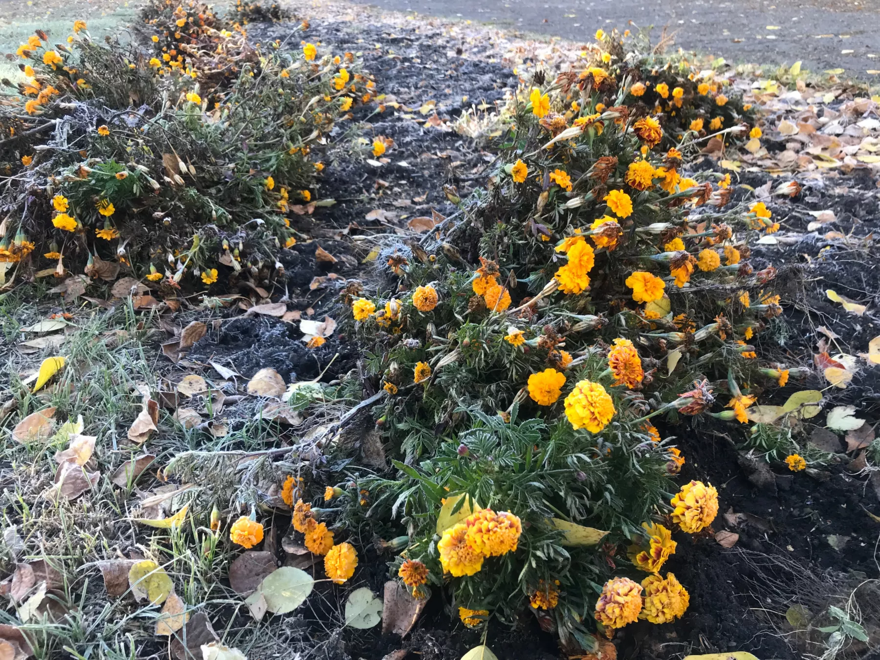 В основном, городские цветы в городе уже убрали: бархатцы аккуратно выдернули из земли. Конечно же, цветы не выбросят на помойку – однолетние растения станут хорошим удобрением, а многолетние отправят на зимовку. Не теряются и горожане: кто-то собирает из брошенных цветов некое подобие икебаны, кто-то берет для своих нужд.