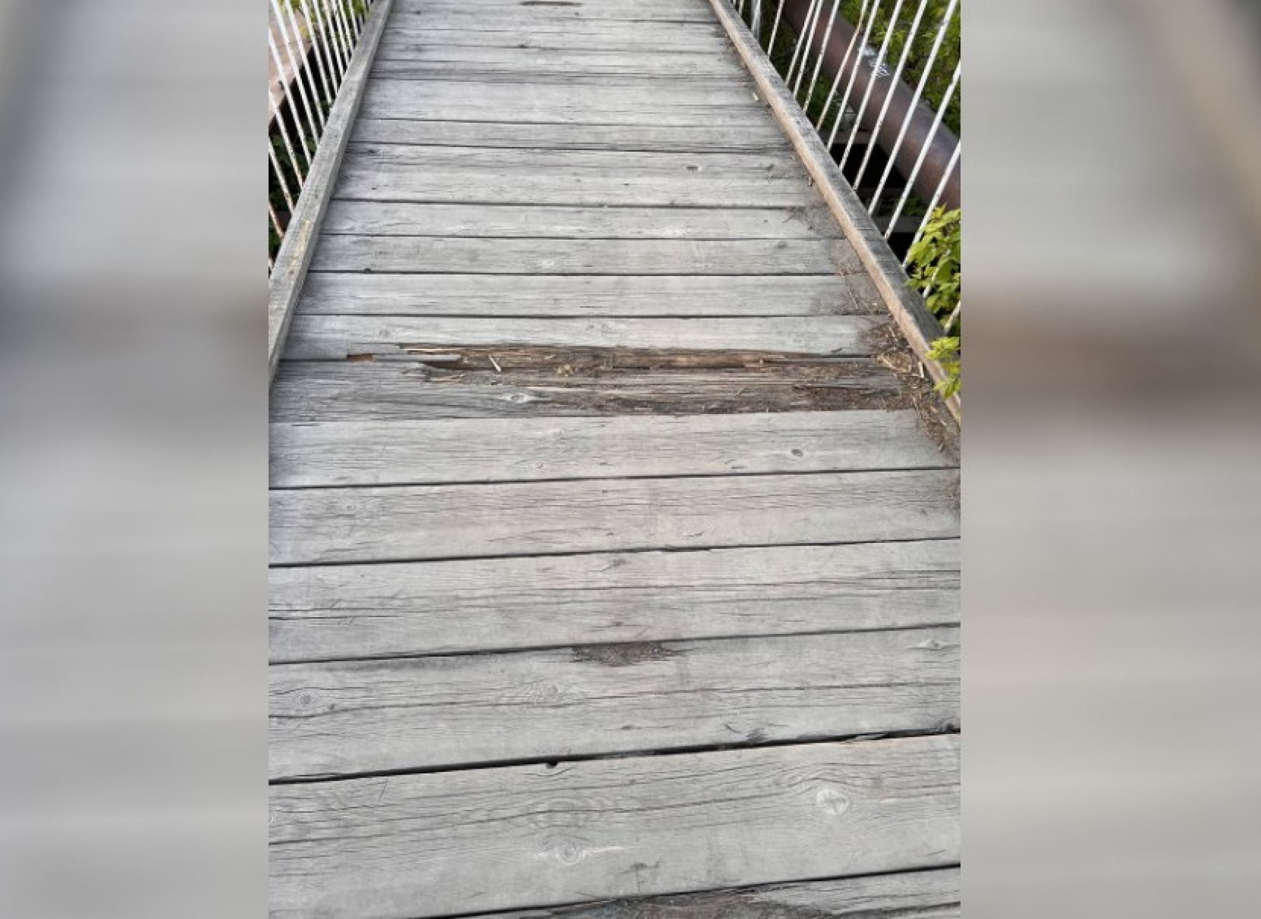 - На мостике от ул. Петрова в сторону ул. Пожарской, в районе больницы №2 сломана доска, еще одна - на подходе. Прошу принять меры!