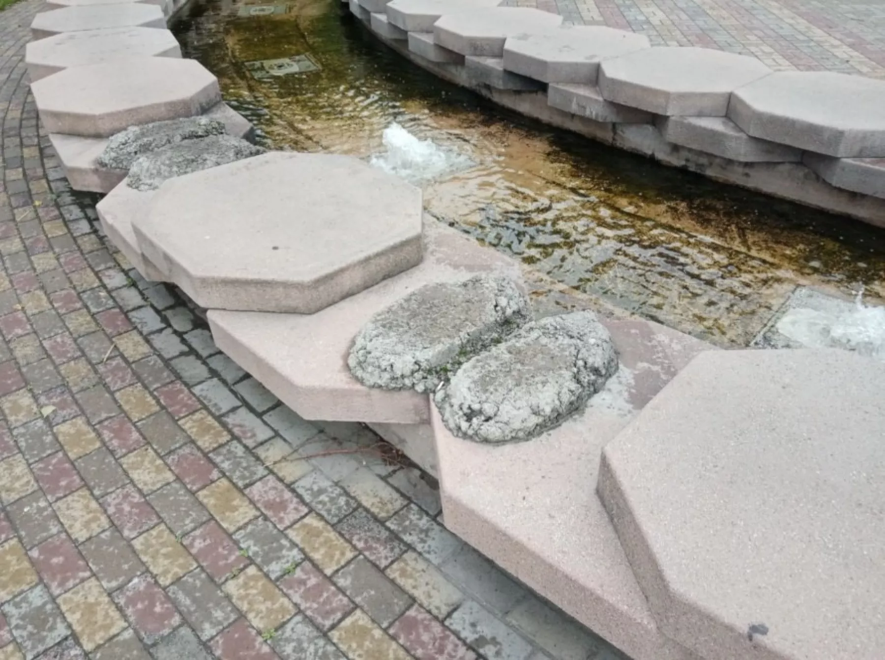 Бийчане обратили внимание, что фонтан, расположенный на бульваре Вали Максимовой, который буквально недавно начал работать без перебоев после ремонта, лишился части плит по краям.
