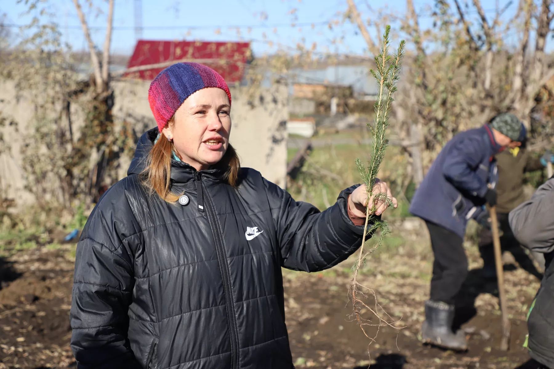 - Чтобы хвойное дерево прижилось, очень важно не заглубить корневую шейку. В лунку желательно добавить осенние удобрения, - проводит она ликбез. – Первый слой земли обязательно хорошенько прижимаем вокруг корневой системы, чтобы не осталось воздуха. Вокруг саженца должно остаться углубление – тогда получится хорошо пролить посадки перед холодами.