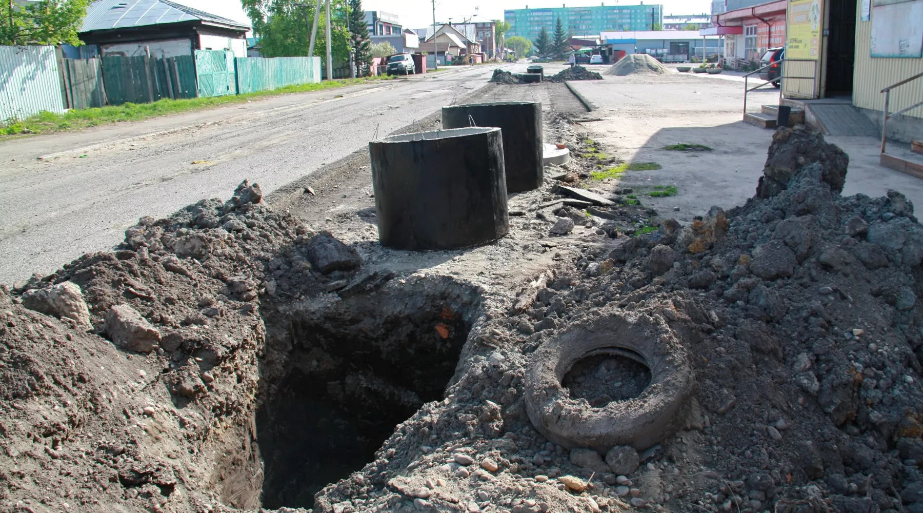 В итоге на ремонт дороги были выделены дополнительные средства, а сам проект переработан. Сейчас на Сенной идут работы по обустройству ливневки, здесь появятся колодцы. Ливневка будет врезаться в централизованную канализацию.
