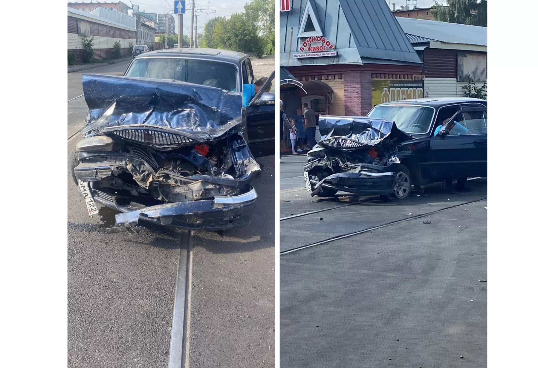 На кадрах с места аварии видно, что автомобиль получил серьезные повреждения. Сообщается, что водитель "Волги" госпитализирован.