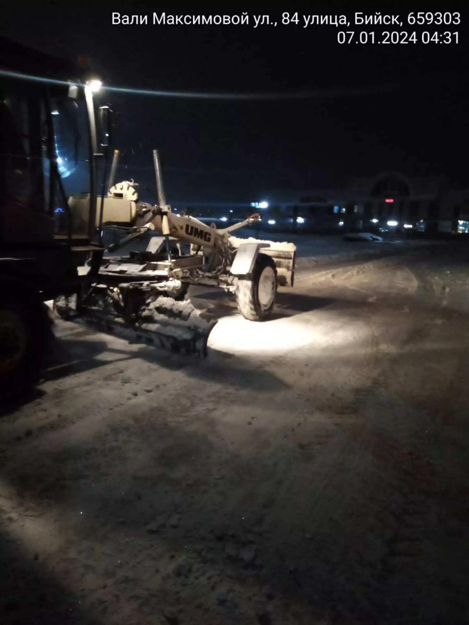 В Бийске несмотря на праздничные дни, работники коммунальных служб постоянно работают на дорогах города, сообщает администрация. В ночное время тяжелая техника прошла по нескольким улицам Бийска.