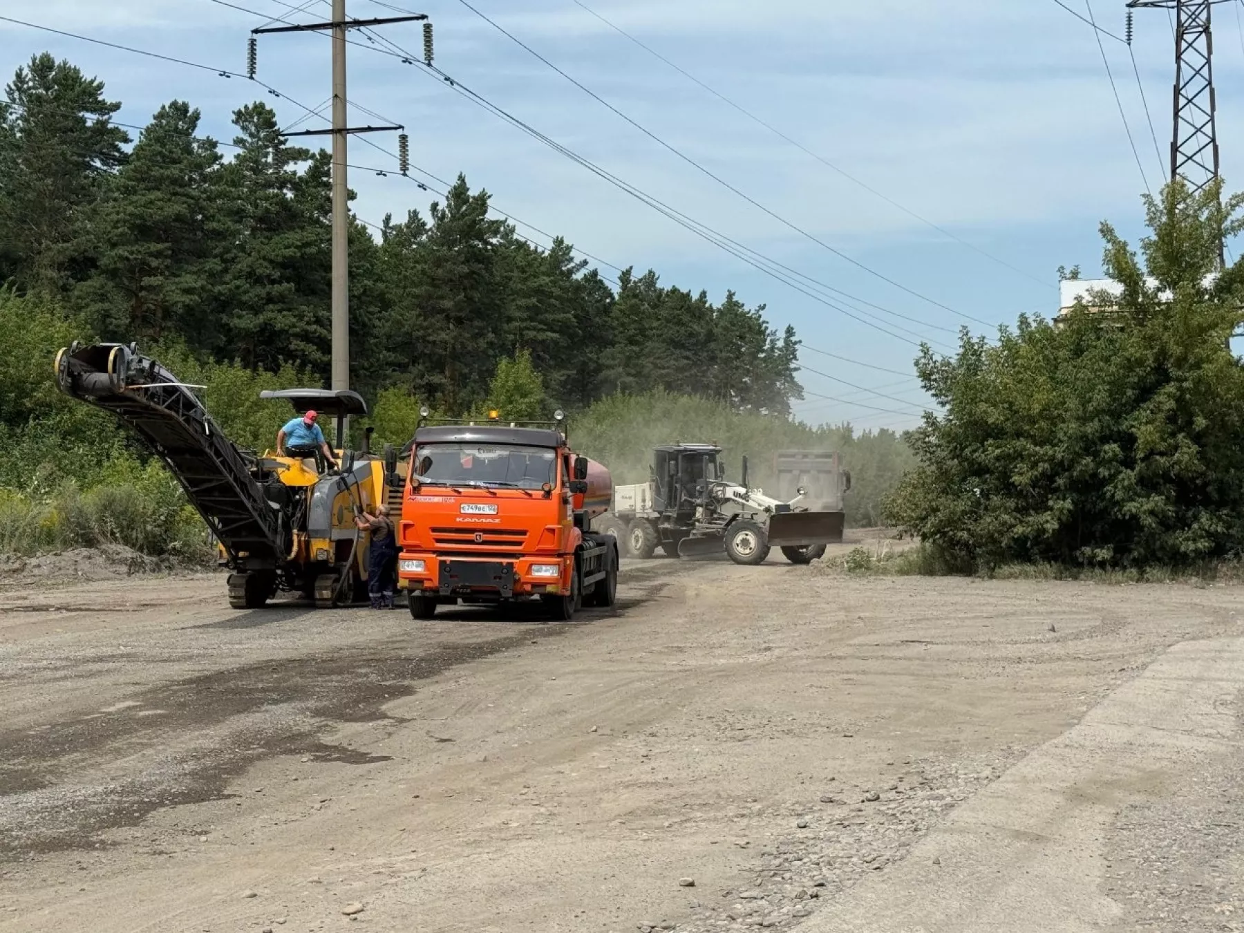 Так, перед устройством нового асфальтобетонного покрытия на ул. Лесной дорожники выполняют планировку основания.