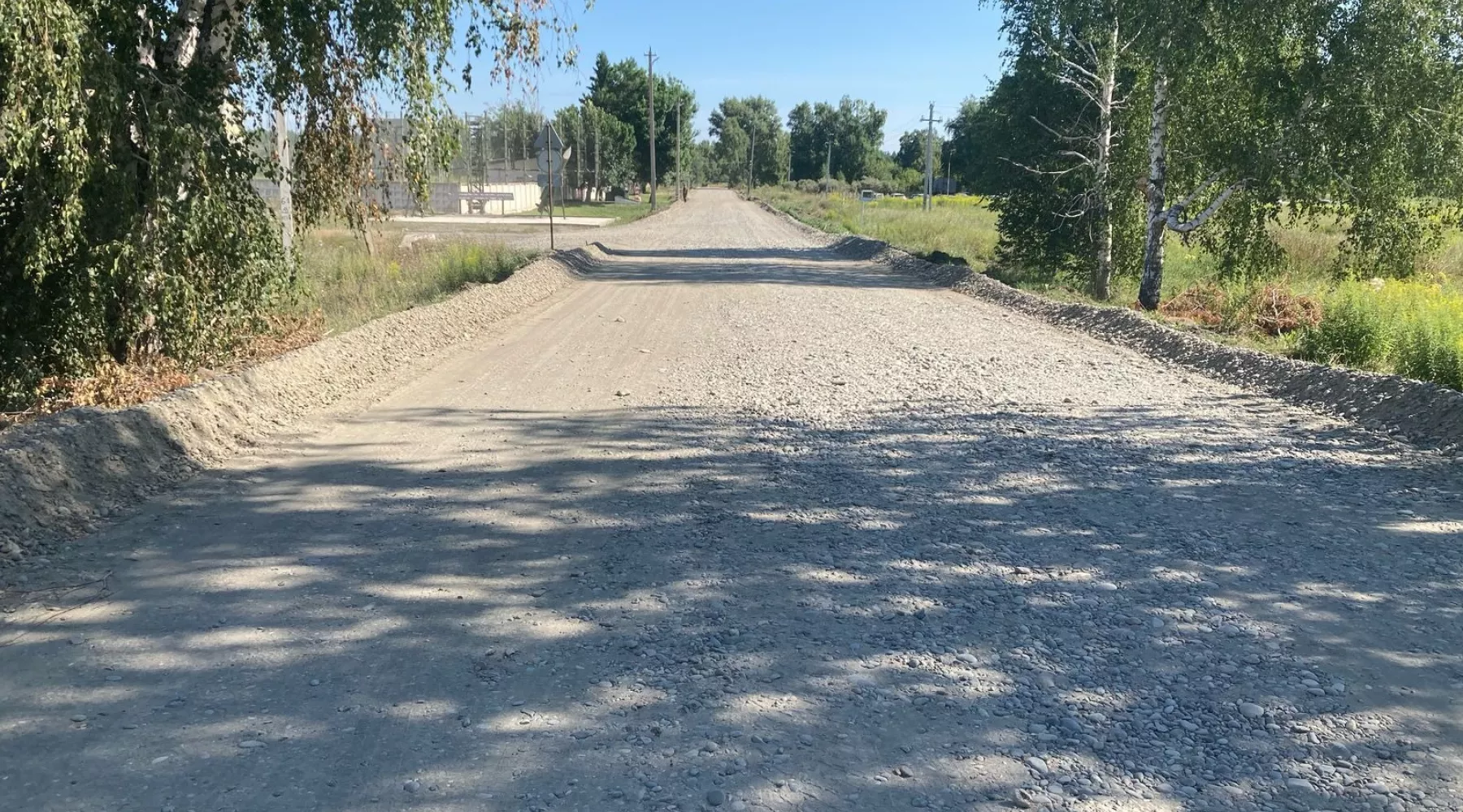 В границах от 9-го км Чуйского тракта до автобусной остановки «6-й Военный городок» демонтировали старое покрытие, уложили геополотно и устроили выравнивающий слой из ПГС.