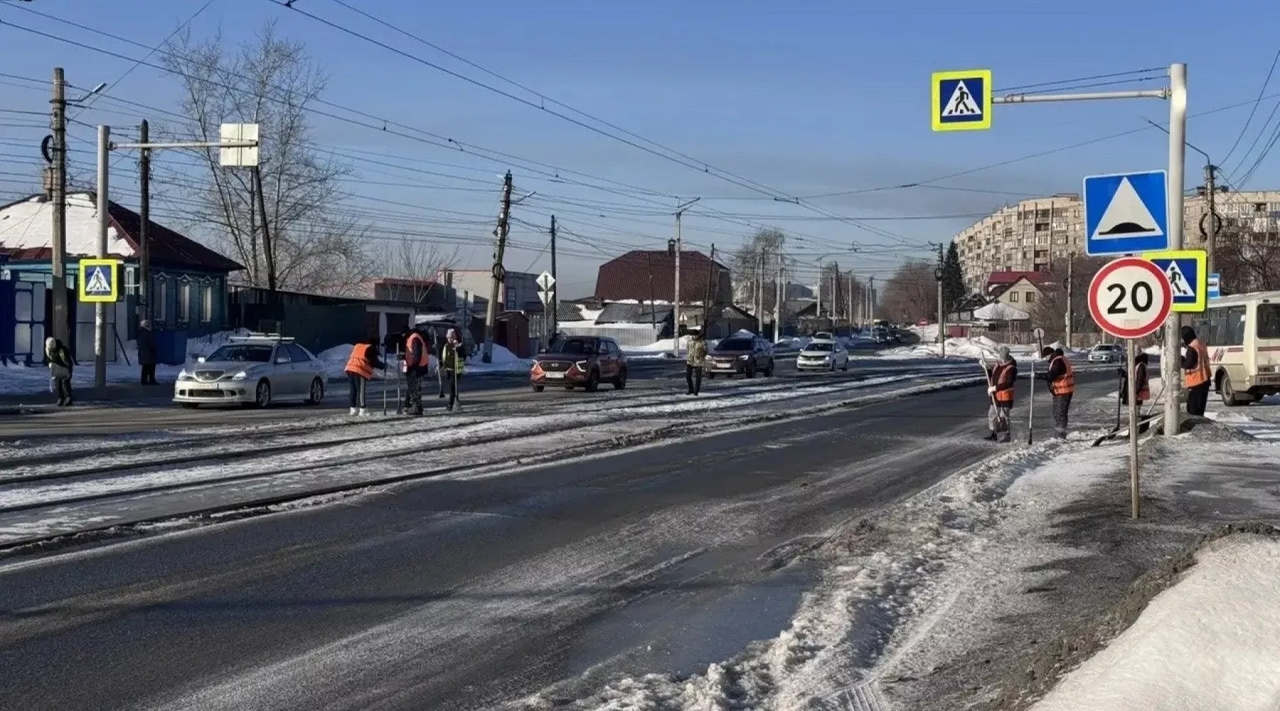Произведена ручная очистка пешеходных переходов и остановок на улицах Васильева, Советская, Мерлина, В. Максимовой, Иркутская и Короленко, а также в поселке Сорокино.