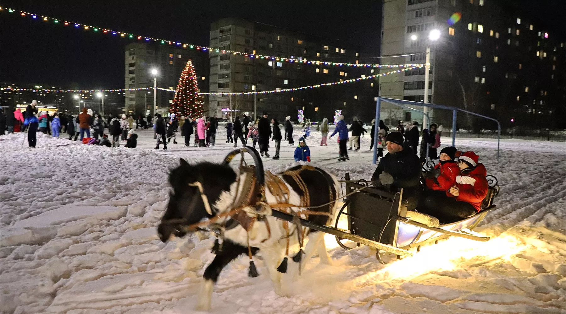 Первый раз каток здесь залили четыре года назад. С тех пор традицию неизменно соблюдают, а размах праздника только набирает обороты.