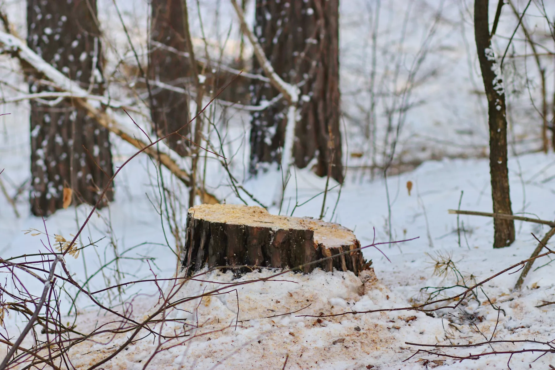 Там есть место в лесу в низине, после стадиона в сторону очистных, где все затянуто высоким кустарником или небольшими деревьями, что даже летом днем там были сумерки. Наркоманы в одно время там повадились свое варево изготовлять, шприцы везде валялись. Есть такое смутное подозрение, что это место лесники не тронут. Посмотрим летом.