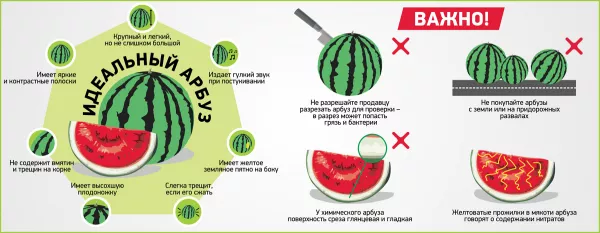 Не рекомендуется брать разрезанные арбузы, потому что мякоть ягоды - это благоприятная среда для микробов. Даже укрыв его пищевой пленкой, не всегда удается уберечь плод от бактерий. Но если вы твердо настроены, тогда обратите внимание на белые и желтоватые прожилки - это верный признак чрезмерного содержания нитратов и пестицидов.