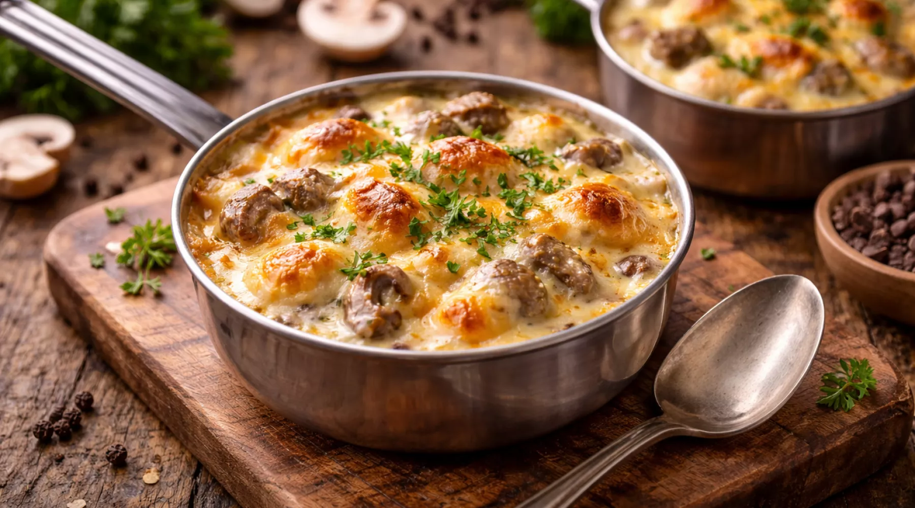 - Если нет кокотниц: Можно использовать небольшие керамические горшочки, порционные формочки для суфле или даже обычную жаропрочную форму, выложив массу горкой и посыпав сыром. Время запекания в форме может увеличиться.