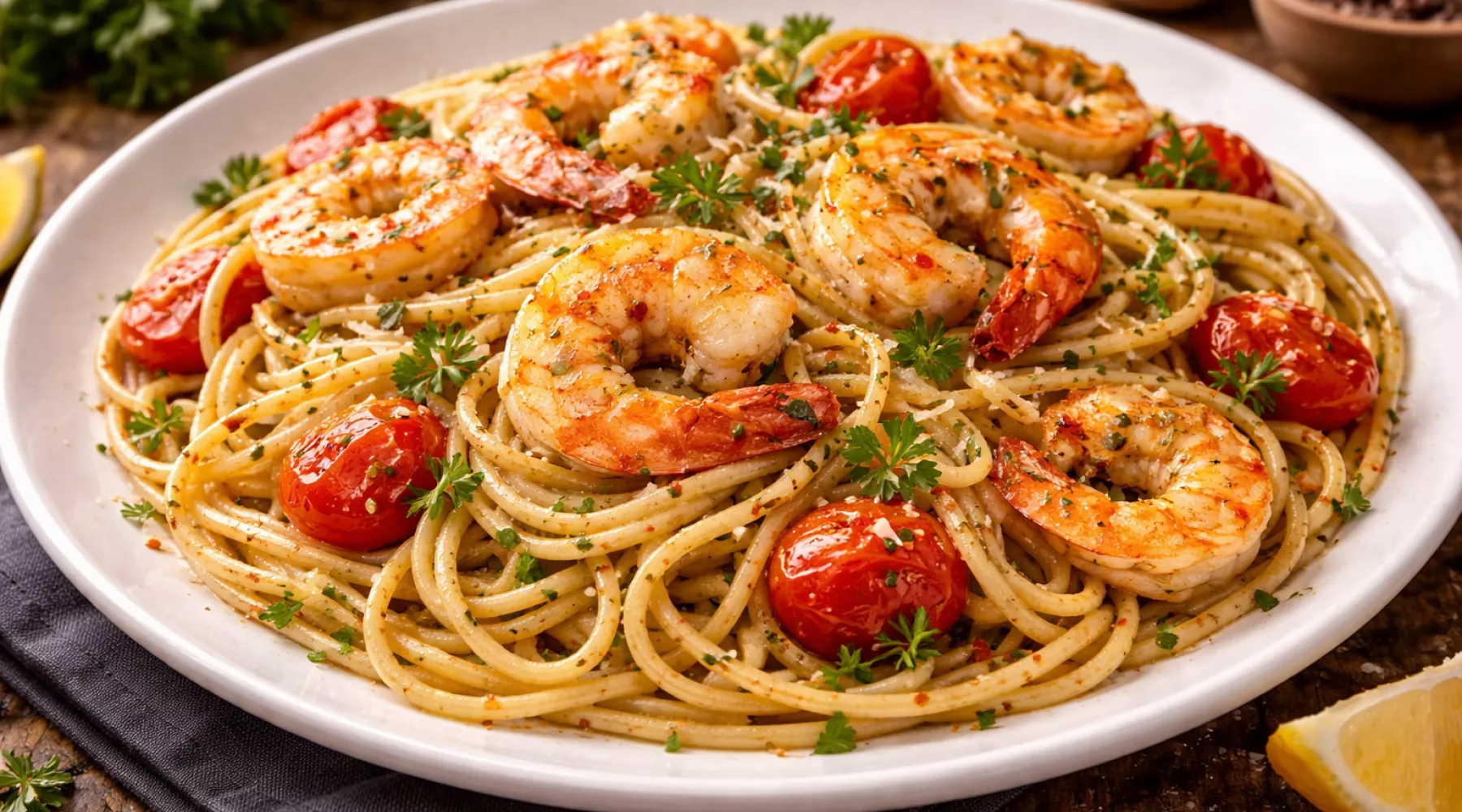 Подавайте немедленно, пока паста горячая, а креветки — нежные. Пасту с креветками не готовят впрок — её нужно есть свежеприготовленной.