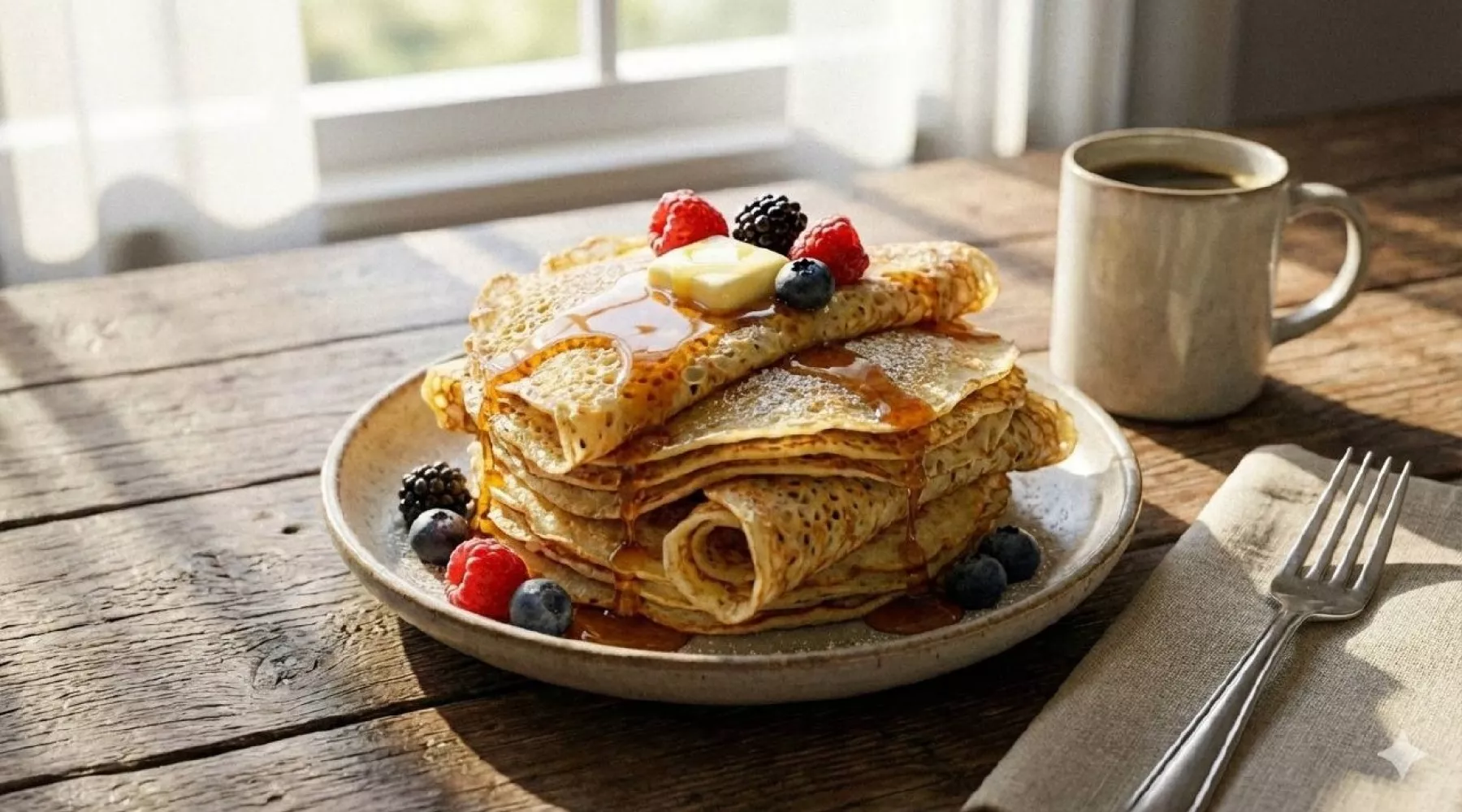 Складка: Готовый блин снимите на тарелку и сразу смажьте сливочным маслом. Складывайте стопкой — так они останутся мягкими и пропитаются маслом.