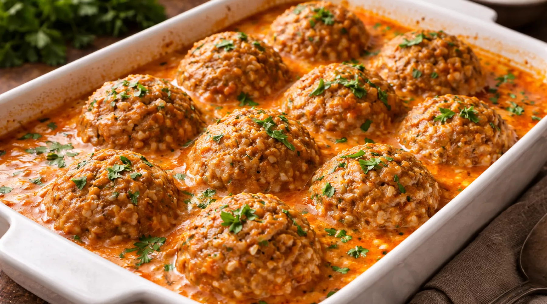 - Запекание в духовке (ШАГ 5): Аккуратно залейте ежики соусом так, чтобы он почти полностью их покрыл. Накройте форму фольгой или крышкой. Разогрейте духовку до 180°C и поставьте форму запекаться на 40 минут. Затем снимите фольгу и готовьте еще 15-20 минут, чтобы соус слегка загустел, а сверху появилась аппетитная румяная корочка.