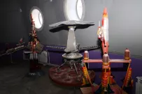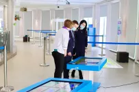Для самых маленьких в планетарии работает досуговая игровая зона: с песочницей, забавными пазлами, различными развивающими играми и несколькими интерактивными столами. Родители могут привести сюда детей с пяти лет. Но на самом деле, «залипнуть» на таких играх может даже взрослый. Администрация города с удовольствием покидала мячики в интерактивную стену, сбивая НЛО, которые крали коров.