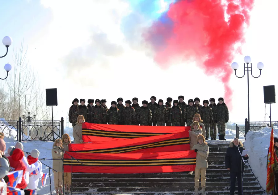 В бийском Парке Победы 18 февраля состоялось торжественное открытие Года защитника Отечества. Мероприятие организовали для образовательных учреждений города. Об этом сообщили в пресс-службе администрации Бийска.