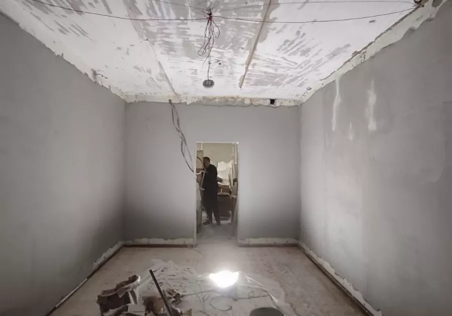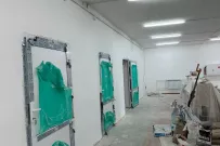 На данный момент подрядная организация выполнила около 90% всех работ. В здании уже оштукатурены и покрашены практически все кабинеты, стены в помещениях выложены плиткой, установлены 20 из 24 входных и межкомнатных дверей и т. д.