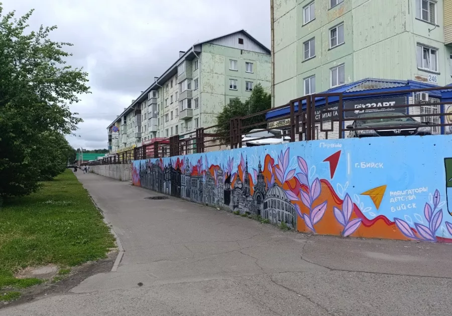 Творческая молодежь продолжает преображать город: вместо серой подпорной стены на ул. Ленина теперь настоящая галерея. На нескольких эскизах, которые были выбраны для воплощения в жизнь изображены достопримечательности Бийска. Для переноса на стену было выбрано интересное сочетание красок и цветовые акценты. Если сами здания - серо-черные, как будто нарисованные карандашом, то фон вокруг них - яркий взрыв сочных красок. Идея и реализация такого проекта, как сообщает пресс-центр администрации Бийска, результат совместной работы «Алтайпатриотцентра», отдела молодежной политики, студентов Бийского филиала им. В.М. Шукшина АлтГПУ, администрации города. Уже готов эскиз для дальнейшего преображения данной стены.