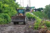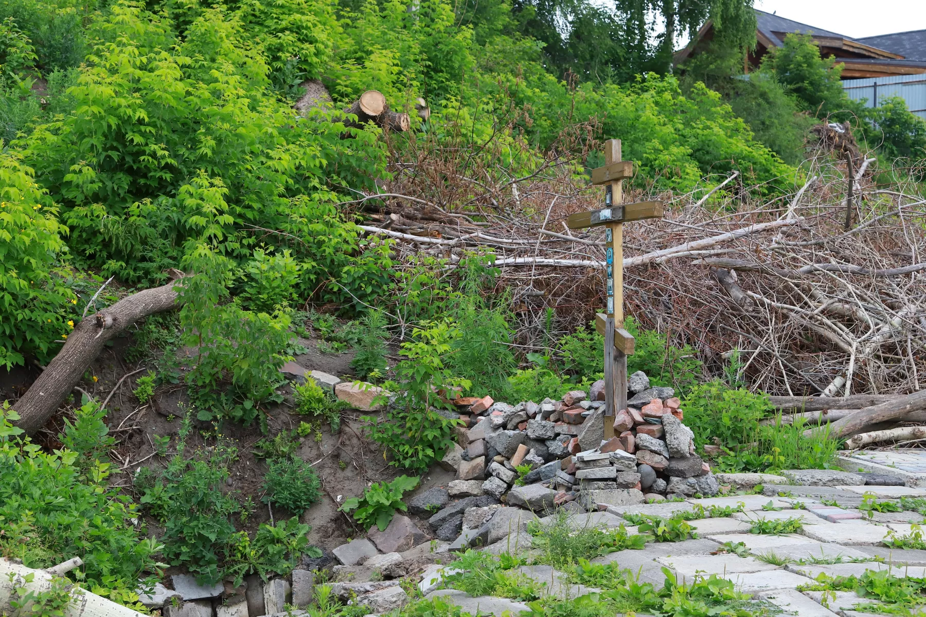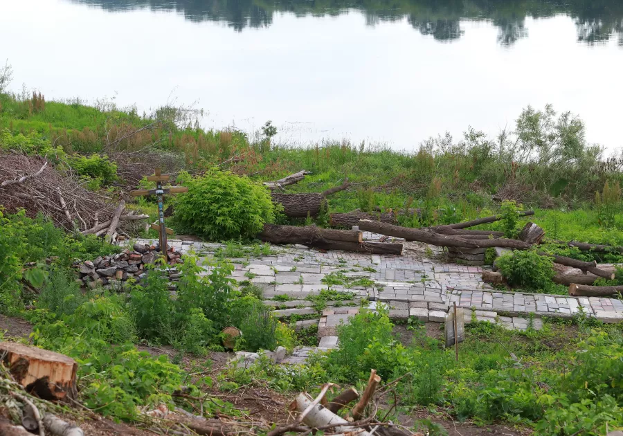 Убирать будут не только природные объекты, демонтажу подлежат все бетонные основания и ступеньки, общая площадь зачистки составит 22600 кв.м. Неприкосновенными останутся только захоронения, они будут отреставрированы. После начнется отсыпка береговой линии - это делается на случай возможного подтопления.
