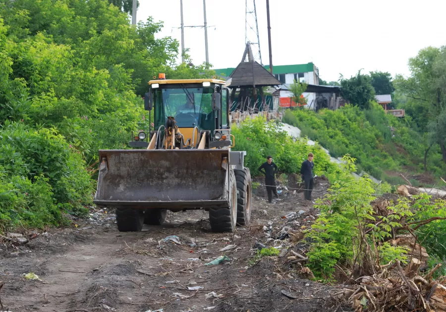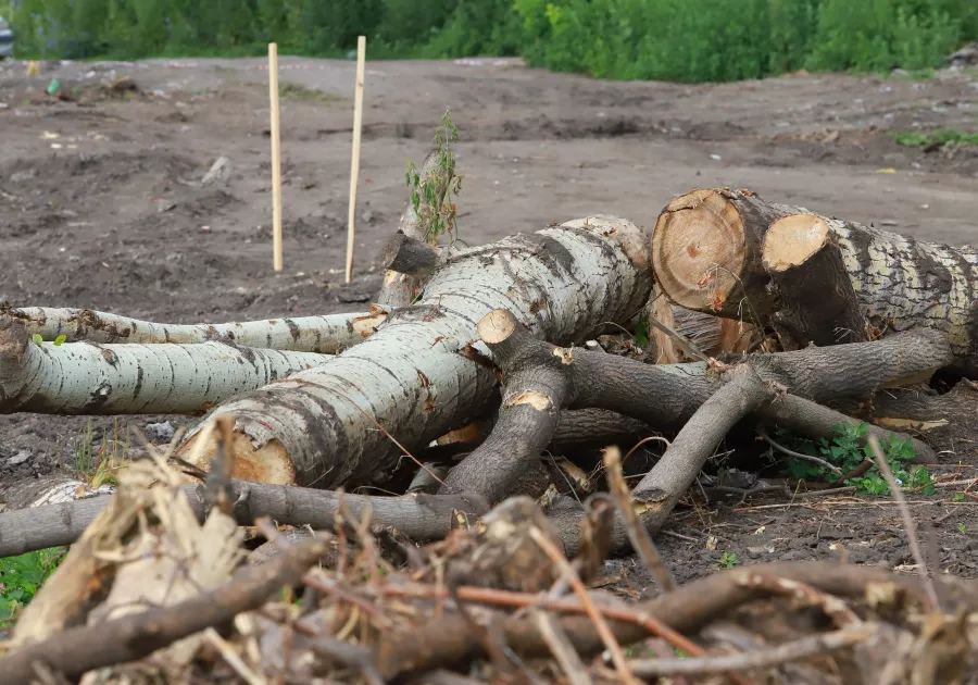 В настоящее время продолжается подготовка территории к основным работам, ликвидация сухостоя и бетонных конструкций