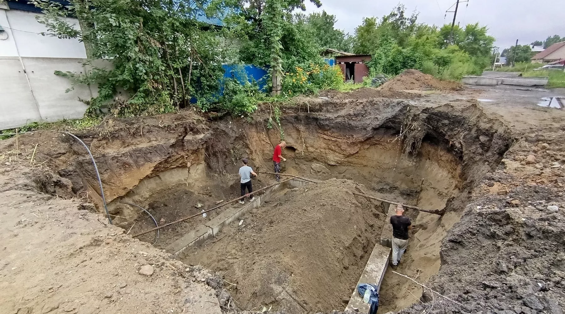 На пересечении пер. Ткацкого и ул. Амурской, специалисты уже завершили подготовку двух котлованов. Грунт был вывезен, а на месте одного из котлованов был установлен основной отстойник объемом 40 кубических метров. Также было подготовлено основание для второго котлована объемом 110 кубических метров.