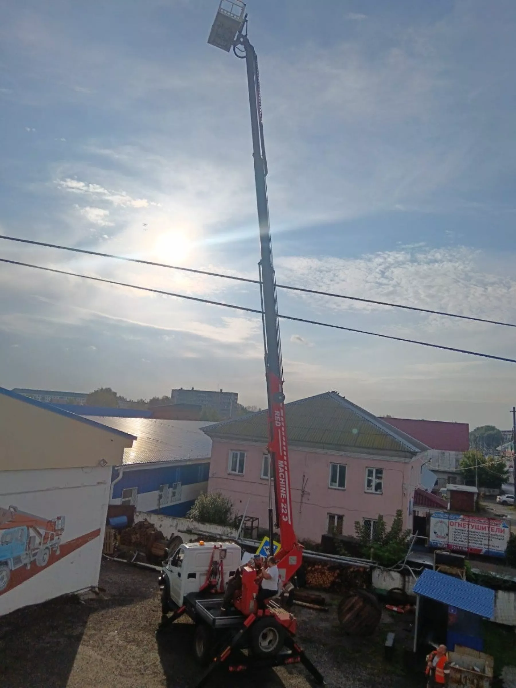 Речь идет об автогидроподъемнике на шасси с телескопической стрелой и поворотной люлькой грузоподъемностью 300 кг. Максимальная рабочая высота – 22 м.