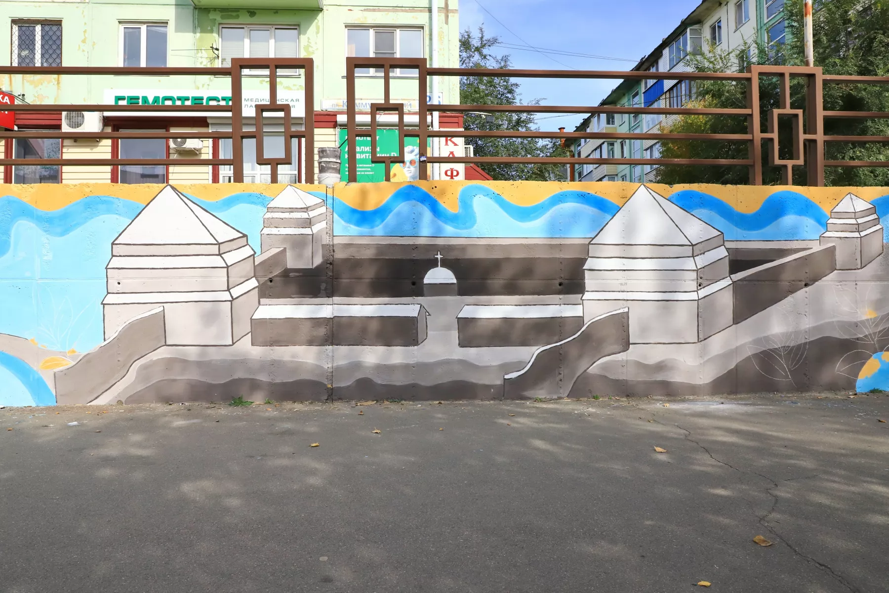 Уже около месяца в Бийске идут работы в пер. Коммунарском. Здесь, на подпорной стене, выходящей на участок федеральной трассы, где всегда высокий транспортный поток, появляется рисунок.