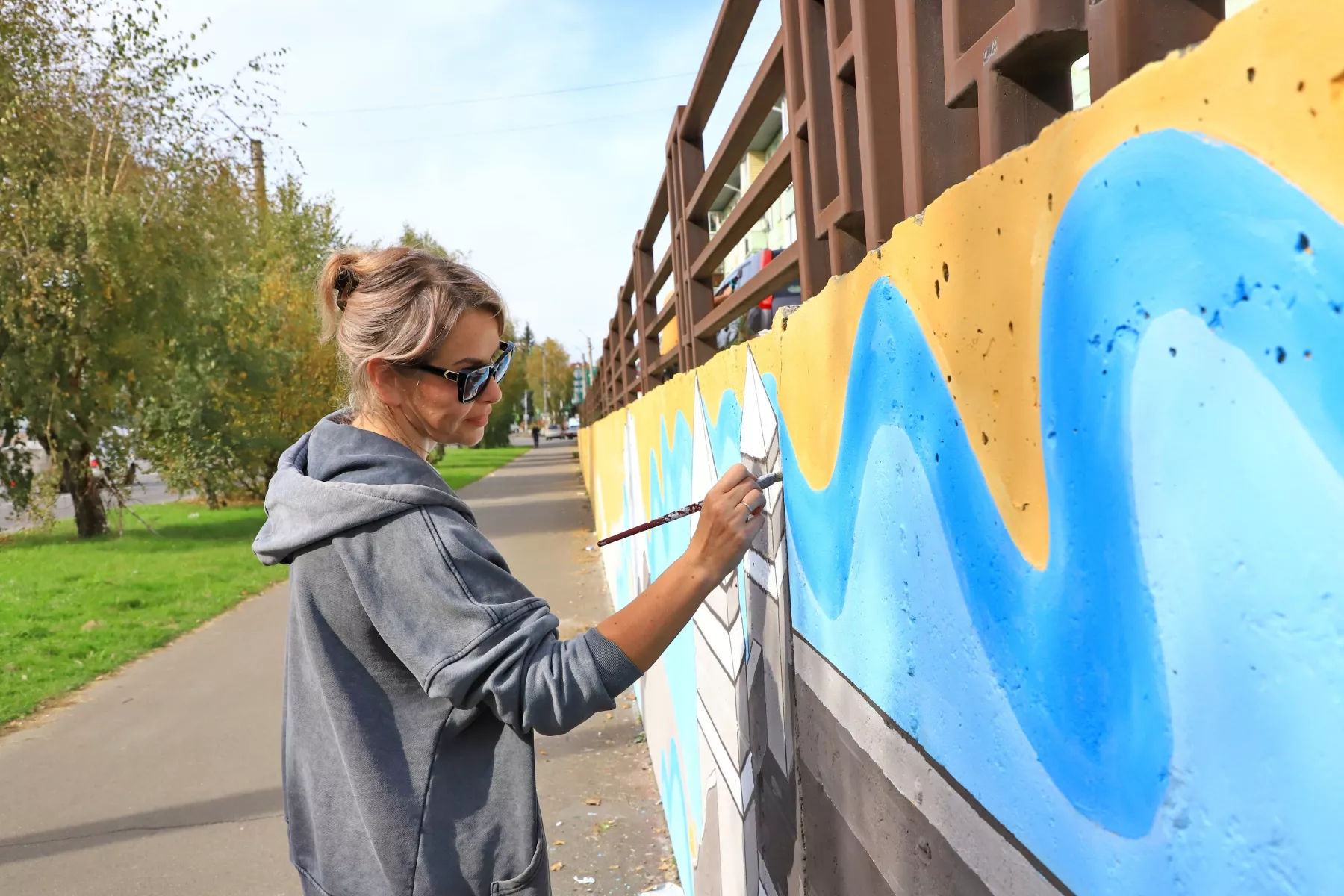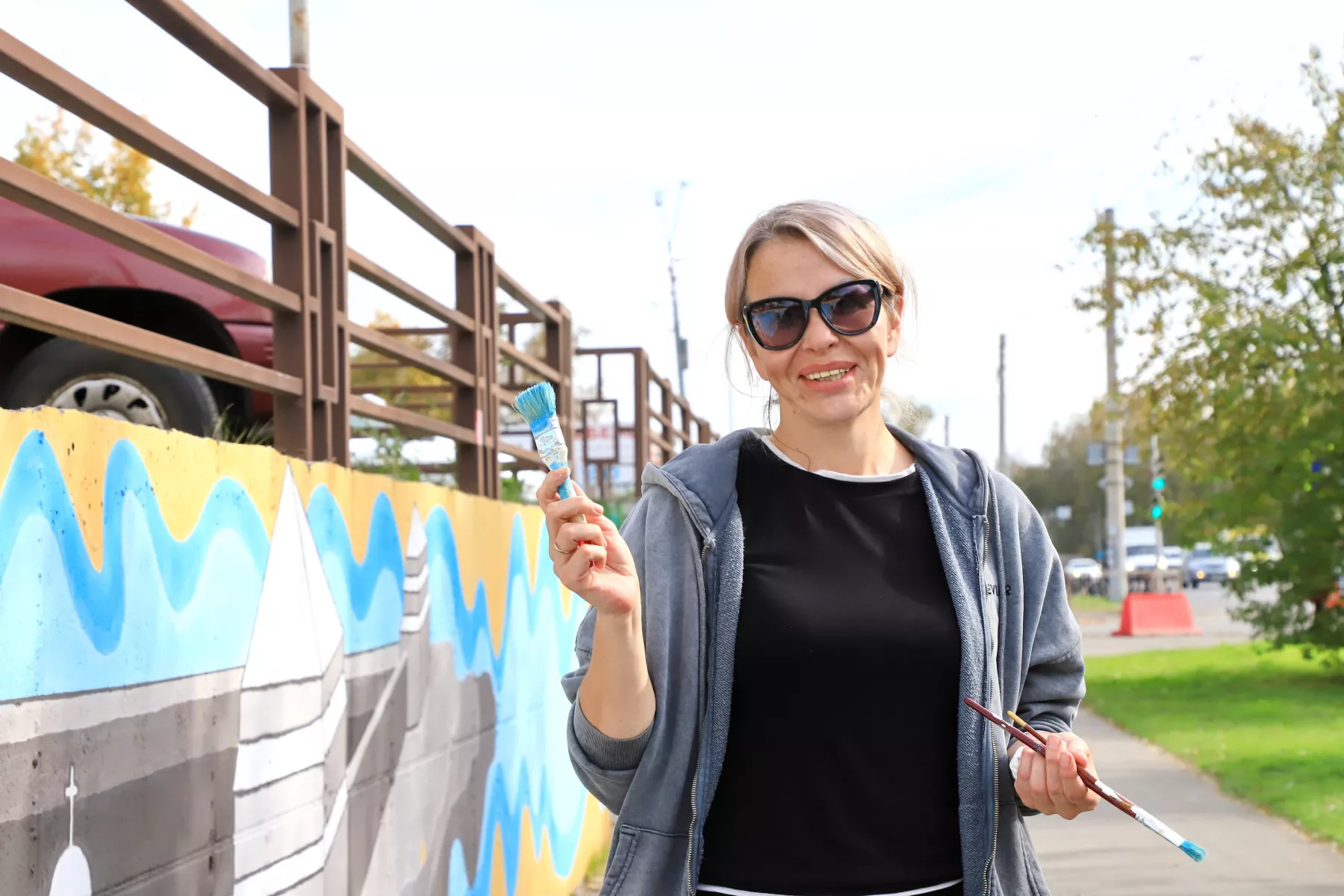 Сейчас на месте работает Марина. Предложение от местной администрации с просьбой расписать стену поступило ей еще летом. Тогда женщине лишь показали первоначальный эскиз рисунка, а с 1 сентября она приступила к работе.