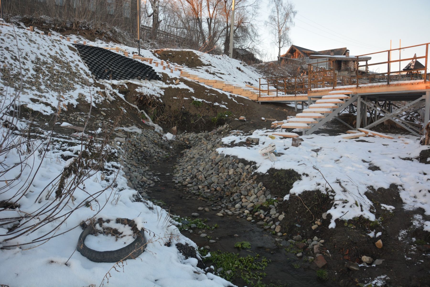 - Выход родника у сквера Фомченко - русло обложено речным камнем, устраивается лестница с обзорной площадкой для спуска к роднику, - отметили изменения в группе ВКонтакте "Архдозор-Бийск".