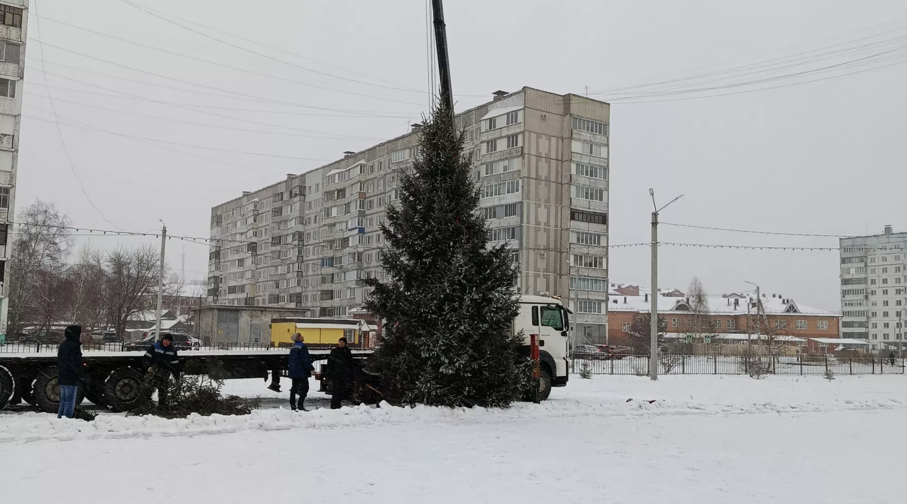 Зеленую красавицу аккуратно транспортировали, пробурили глубокую лунку. Благодаря мастерству умелых людей сама установка заняла несколько минут. Уже повешены гирлянды, скоро их зажгут, а елку осталось только нарядить. Что и будет сделано в ближайшие дни. Впереди - заливка катка. Она проходит в несколько этапов. Все нужно успеть к открытию, которое состоится 25 декабря и будет тематическим.