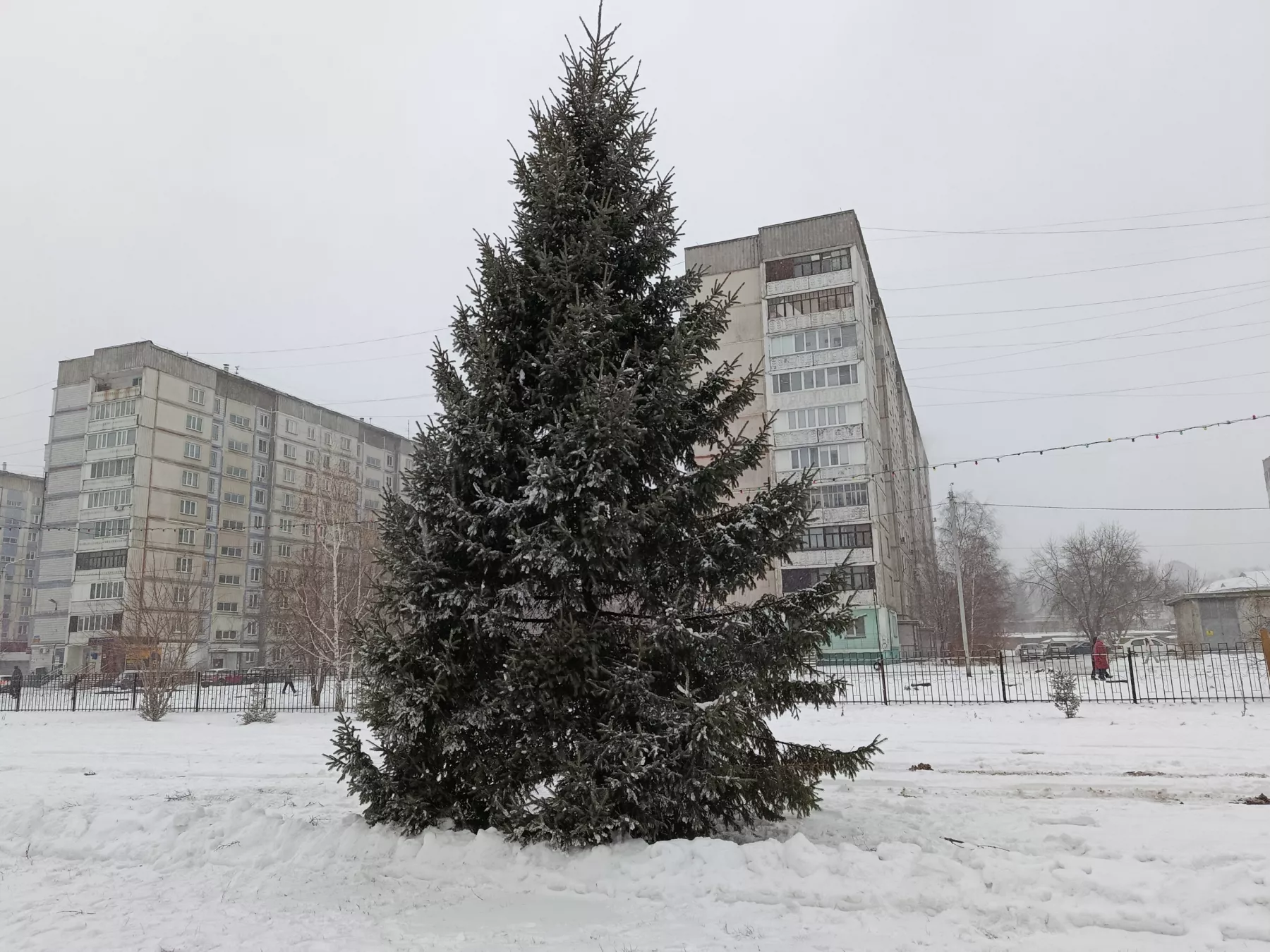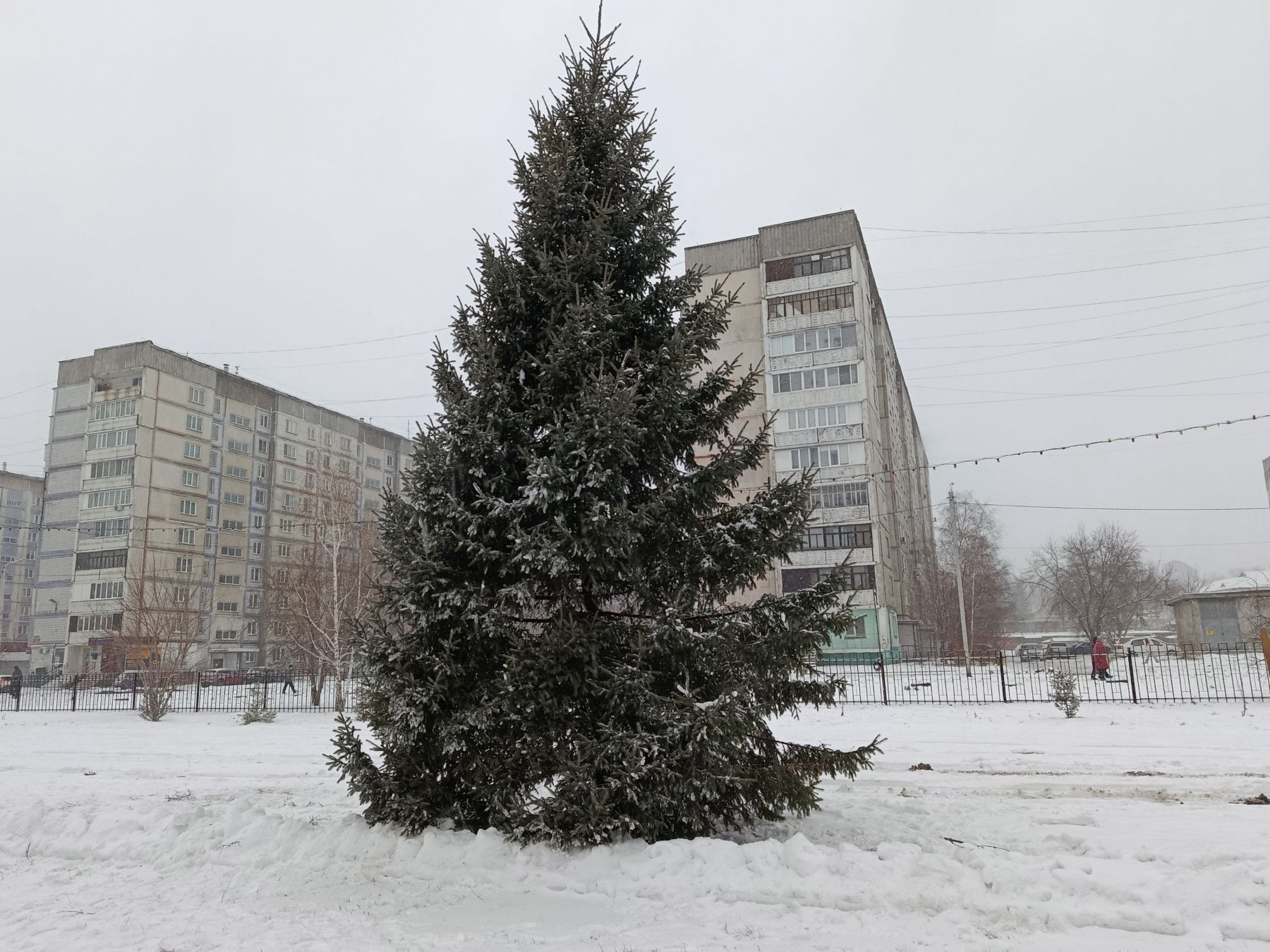 Там уже установили елку, а периметр будущего катка украсили огоньками