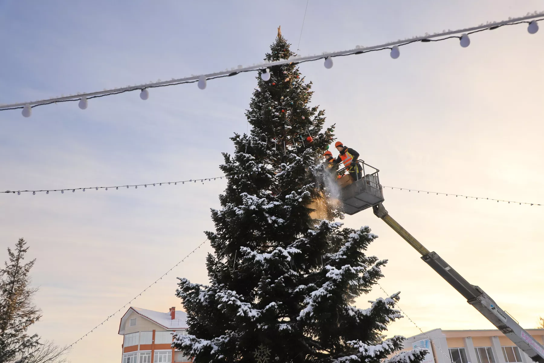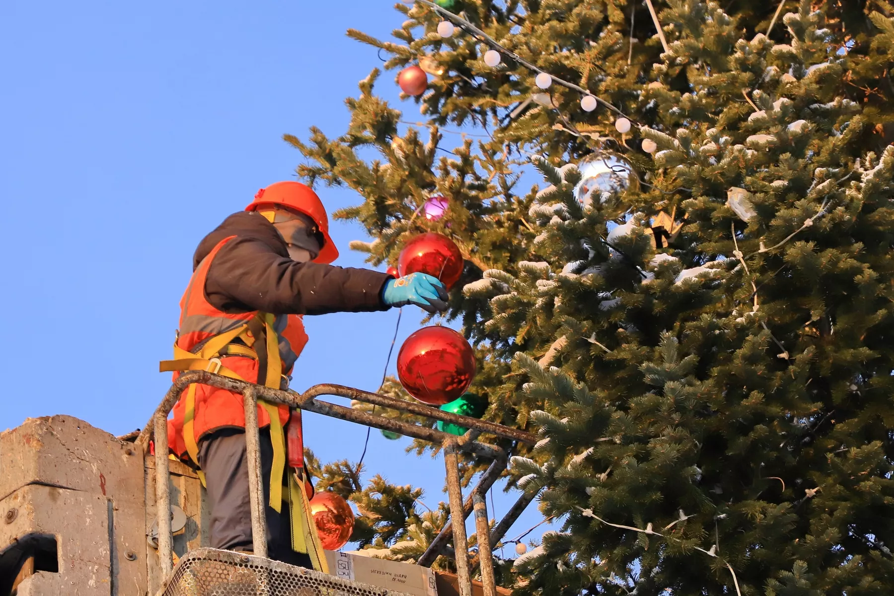 В Бийске продолжается подготовка к Новому году: в городе монтируют праздничные декорации, украшают общественные пространства, устанавливают и наряжают елки.