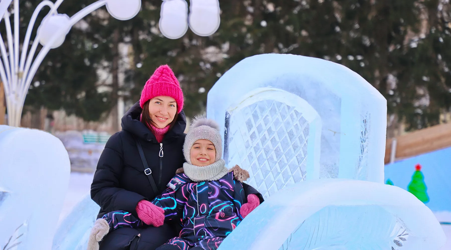 Традиционно радует ребят и взрослых ледовый городок в районе АБ. Место здесь красивое, а "привозную" елку, окружают настоящие, живые хвойные деревья. Для самых маленьких сделали ледяную избушку с аккуратной горкой. Большая деревянная горка пользуется популярностью у ребят всех возрастов. Кстати, она дополнительно покрыта льдом, скольжение - прекрасное! Красивая фотозона и место для игр - упряжка ледяных коней готова взять пассажиров. Можно сделать настоящие, необыкновенные снимки (без использования ИИ!), или же представить, как сани несутся по снегу. Сидеть в них - не запрещается. Еще одна ледовая композиция словно сошла с советской открытки - зайчик и медвежонок катят снеговика на санках. Ледовые ворота в форме подковы "На счастье" держат Конек-Горбунок и Иванушка. Как всегда, есть и большая надпись "С Новым годом 2026". Бийчане, которые бывают на площадке ежегодно, могут таким образом составлять свою хронику.