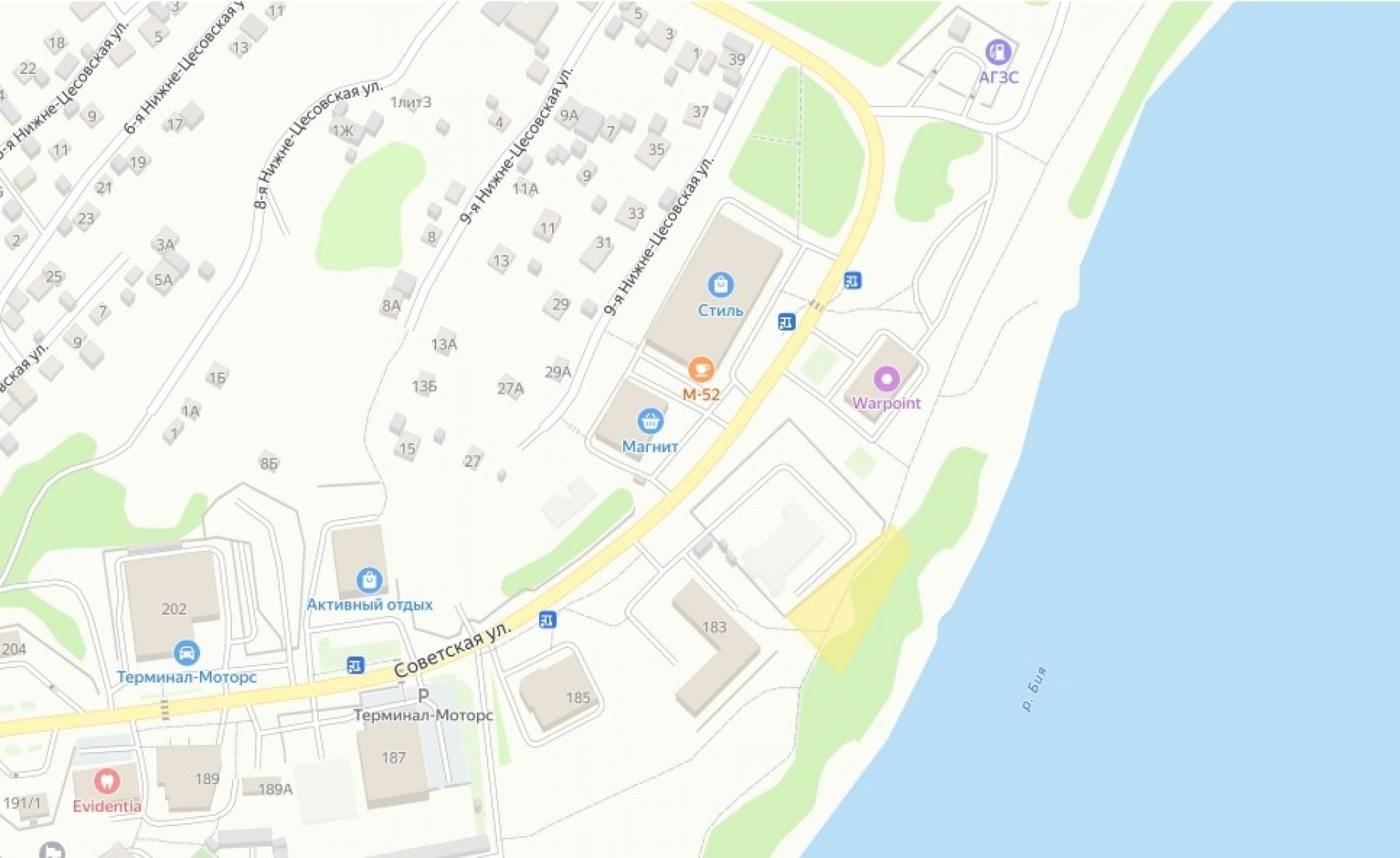Виды разрешенного использования земельного участка - бытовое обслуживание, магазины, общественное питание, гостиничное обслуживание, оказание услуг связи, предоставление коммунальных услуг и пр. Рядом, чуть ближе к дороге по ул. Советской и ТЦ "Стиль" уже ведут строительство.