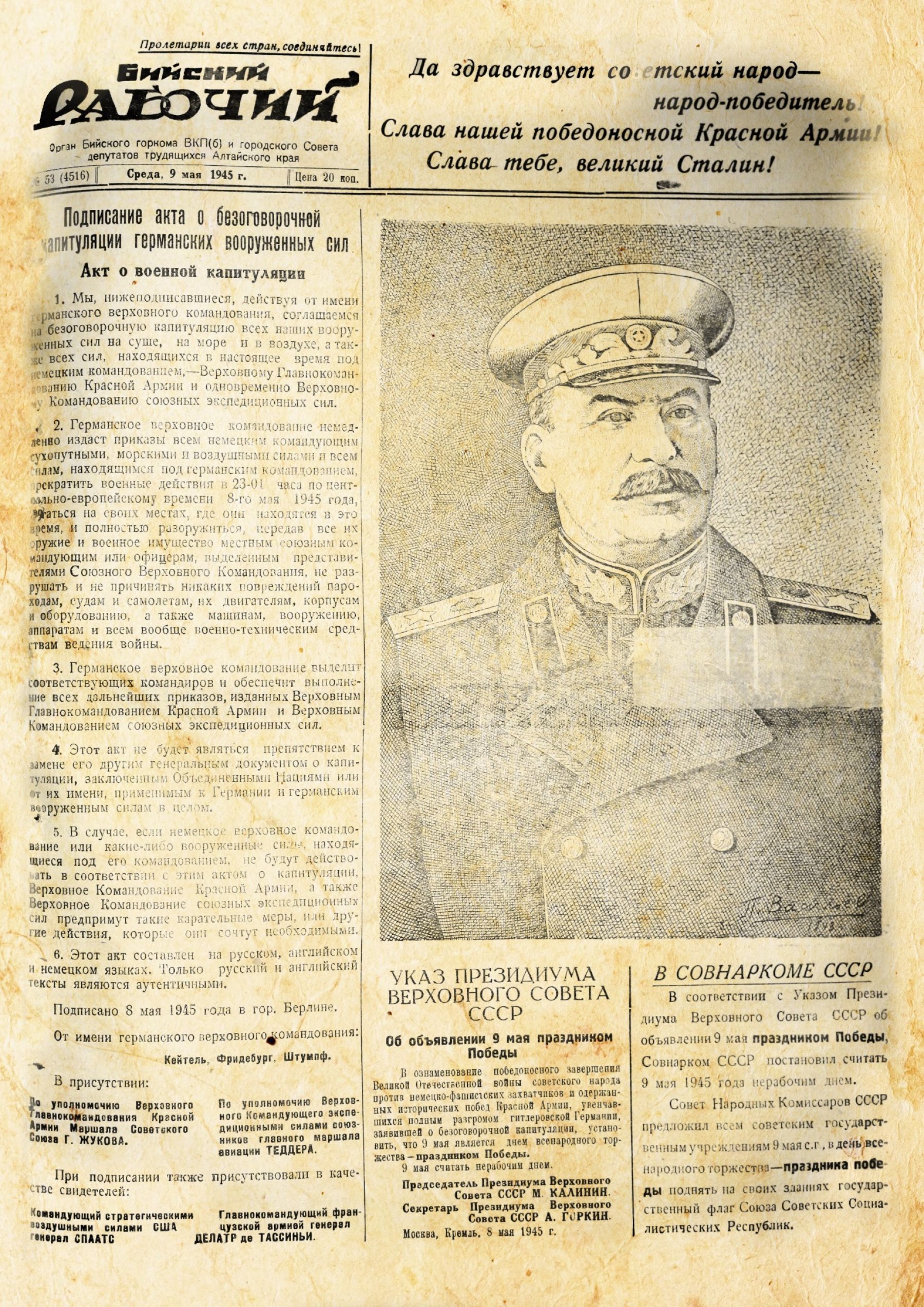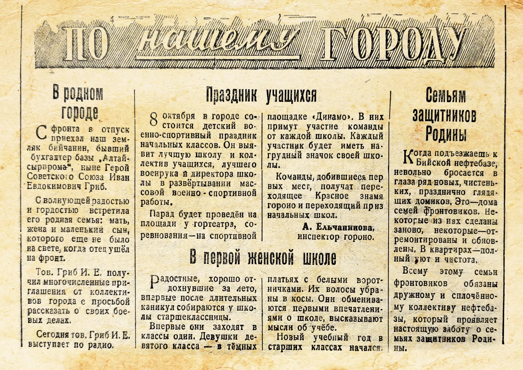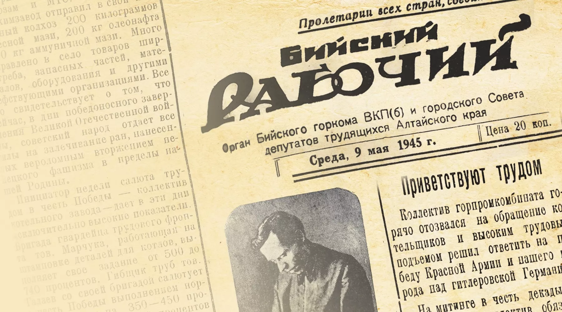 «Бийский рабочий» всегда был летописью города. На страницах газеты за 1940-е годы можно прочесть, как бийчане провожали на фронт сыновей, как собирали посылки для красноармейцев и как отметили долгожданную Победу.