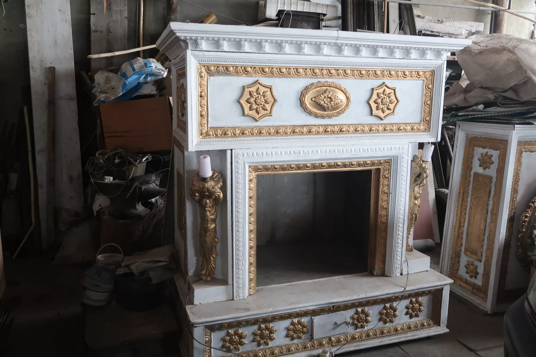 - Вот какой камин сейчас доделываю. Я с супругой в 70-х годах по турпутевке путешествовал по стране. Был в нашем маршруте и Ленинград. В одном из дворцов увидел высоченный камин редчайшей красоты. Купил книгу там же, а дома решил попытаться повторить работу старинных мастеров. По-моему, не плохо получается.