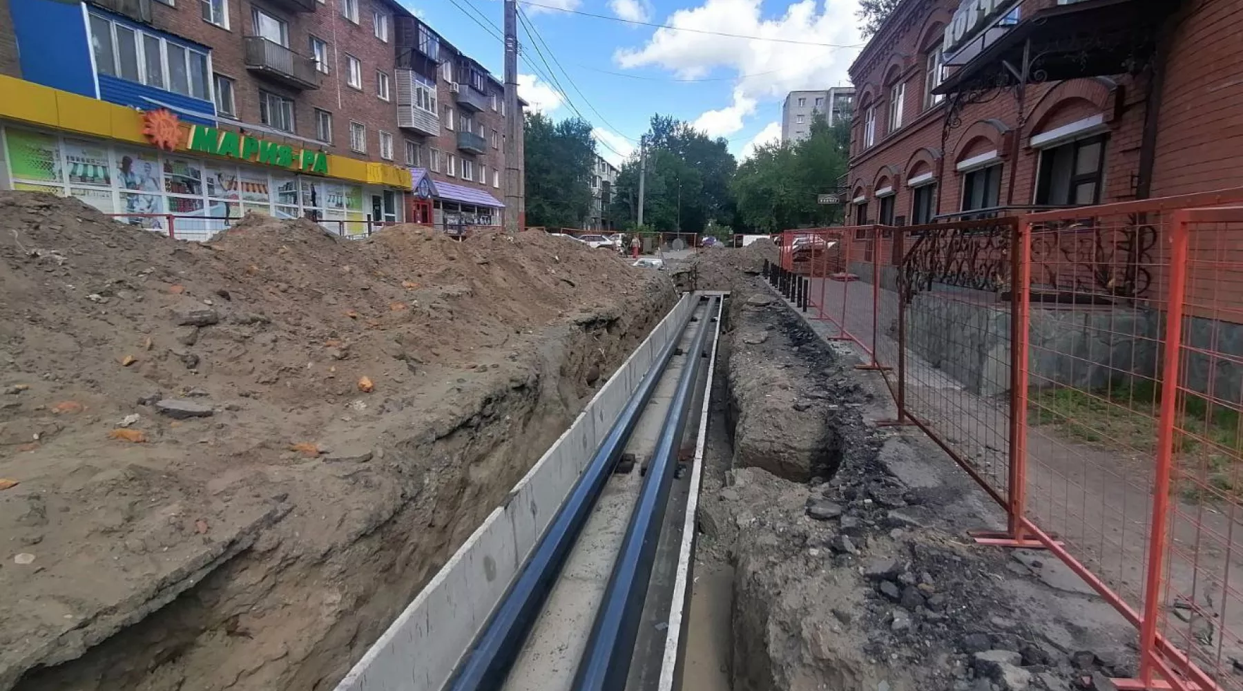Сейчас на ул. Петрова идет подготовка труб к нанесению изоляции. После специалисты закроют их лотками, врежут новый трубопровод в действующую теплосеть и засыпят траншею.