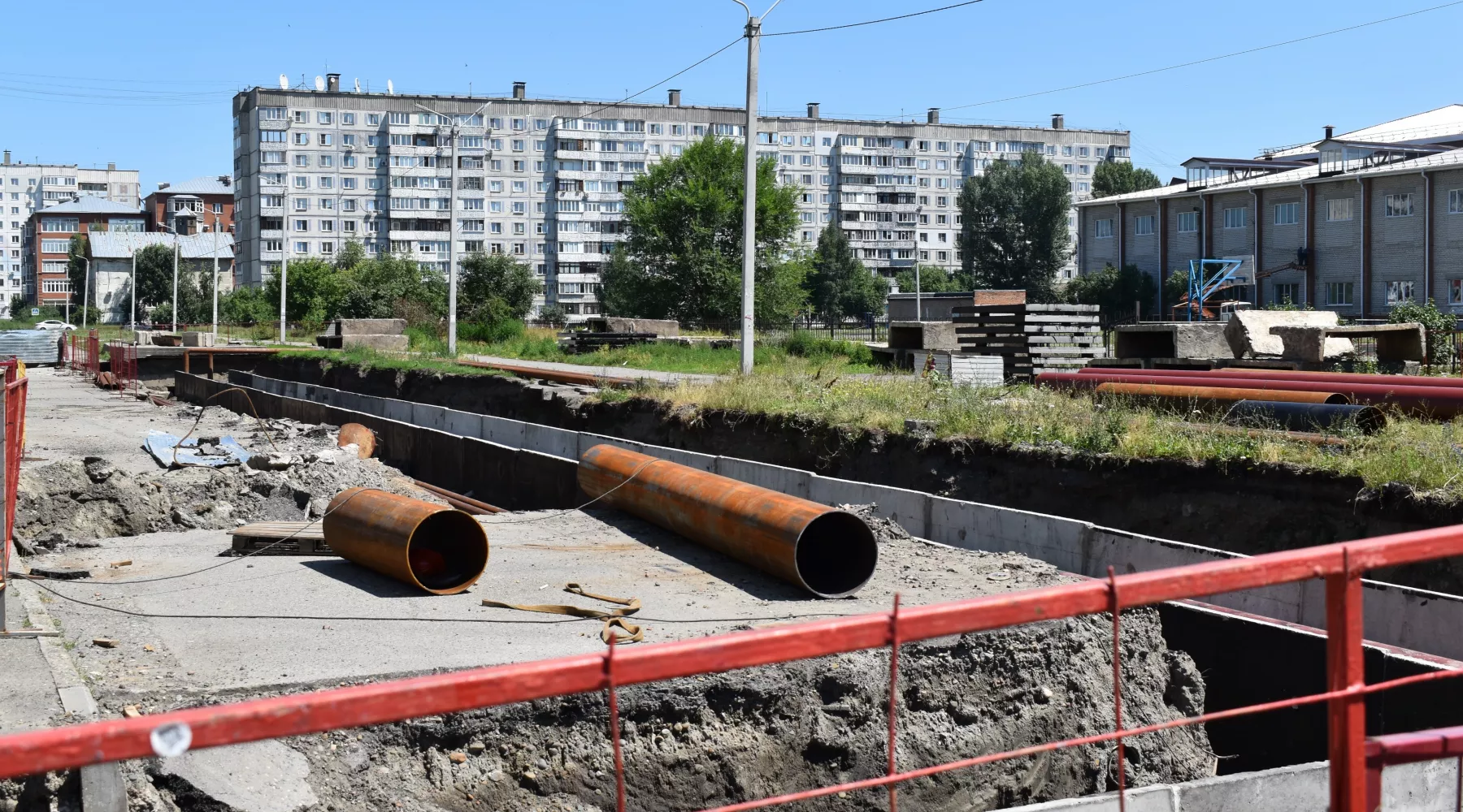 В 23-м микрорайоне, за стадионом школы №1, идут масштабные «раскопки». Здесь происходит замена сетей на участке, длиной 174 метра в двухтрубном исполнении. Дорогу пришлось перекрыть. Тут проходит тепловая магистраль, диаметром 500 мм. По ней горячая вода и отопление поступают почти к 4 тыс. потребителей, а от состояния участка зависит качество теплоснабжения не только в 23-м микрорайоне, но во всей центральной части города.