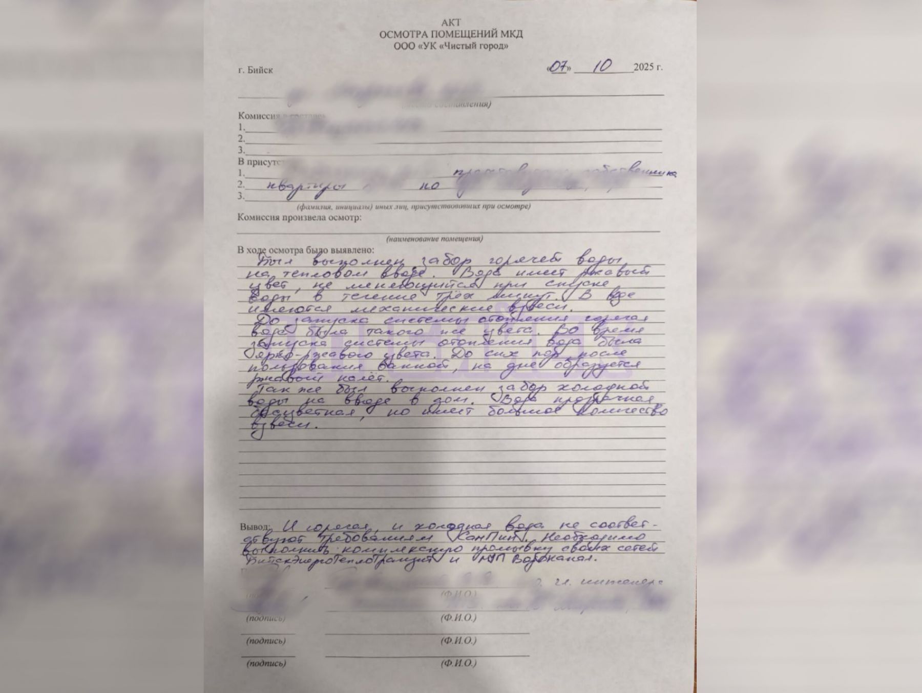 Бийчане, проживающие на ул. Матросова долгое время пытались доказать - ситуация с качеством воды в их доме неблагополучная. Основная жалоба заключалась в ненадлежащем качестве горячей воды: она шла ржавая. Но благодаря их активности, обращениям в различные инстанции, дело сдвинулось с мертвой точки. Опытом они поделились в паблике ТГ-канала "ЧП-Бийск. Новости".