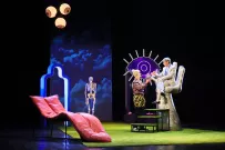 И дело не только в абстрактных декорациях, но и в «заковыристом» повествовании, которое между тем, преподнесено очень легко и с юмором.
