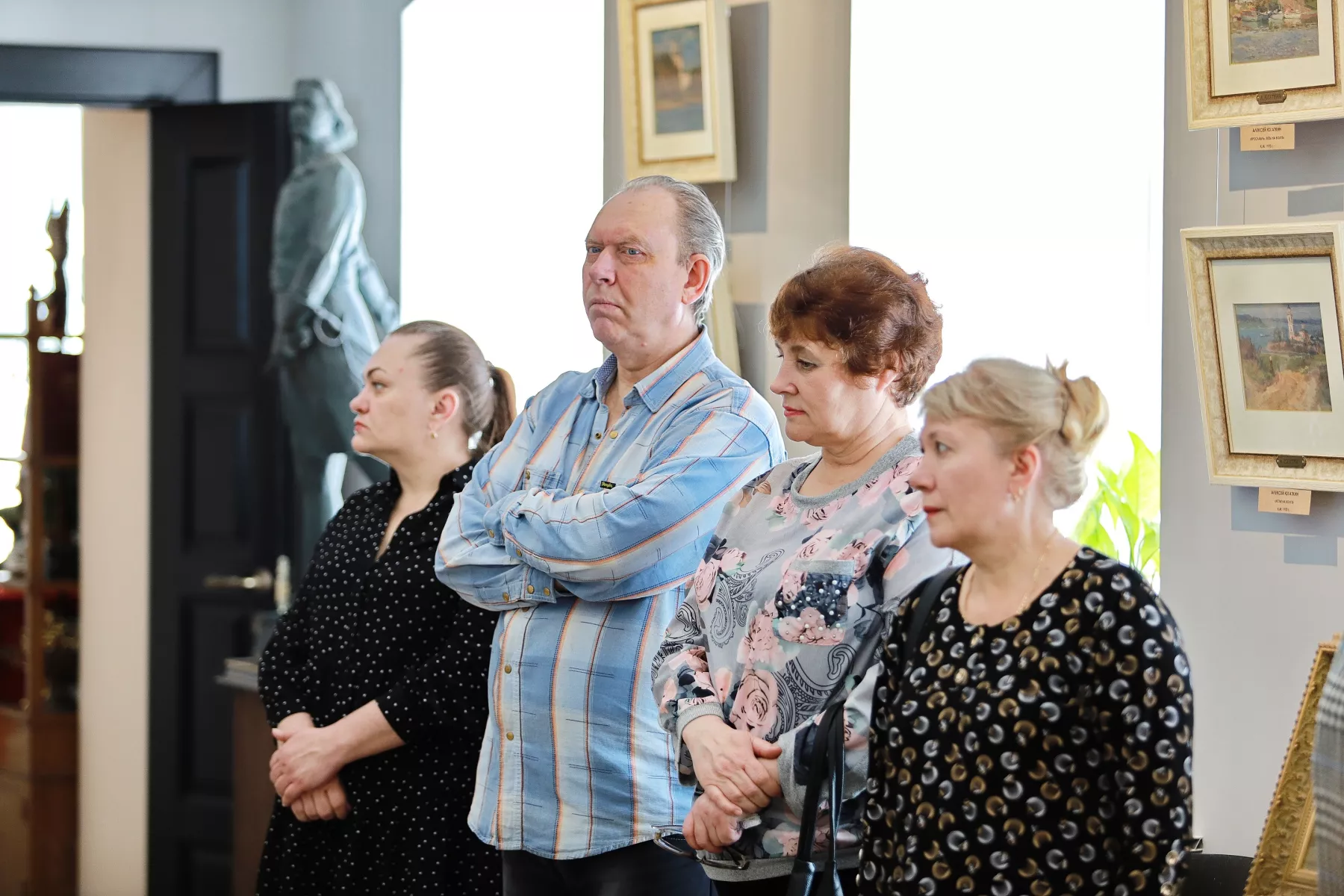 – Первое впечатление – очень приятное. Такие благодатные работы, создается настроение торжественности. Душевно и даже духовно, – говорит Сергей Иванович. – Отметил, что стили разнообразные. Представлено 11 художников, у каждого свой взгляд. И выставка вроде бы объединила их одной узкой темой, но в то же время она многогранная. Здесь мастера высокого класса. Вот работы нашего художника Михаила Будкеева – здесь ведь каждый мазочек прочувствован, продуман. Интересно посмотреть работы других. Я как художник для себя отметил определенные моменты.