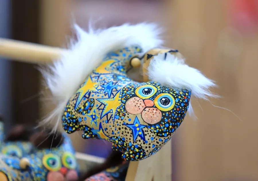 – Занимаюсь изготовлением и росписью одежды из натурального хлопка и льна. Изображаю на ней разные орнаменты – элементы урало-сибирской росписи, орнаменты с травами и птицами. Еще разработала авторскую куклу в смешанной технике. Все детали в ней выполнены вручную. Кукла держится на проволочном каркасе, ручки-ножки у нее двигаются. Лицо сделано из полимерной глины, тоже расписано вручную, – поделилась мастер.