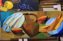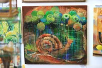 Художница Вера Карнаухова сотрудничает с галереей с момента ее открытия. Для своих работ она часто использует не обычный холст, а дерево, например кедр.