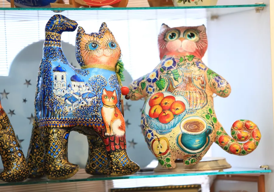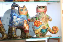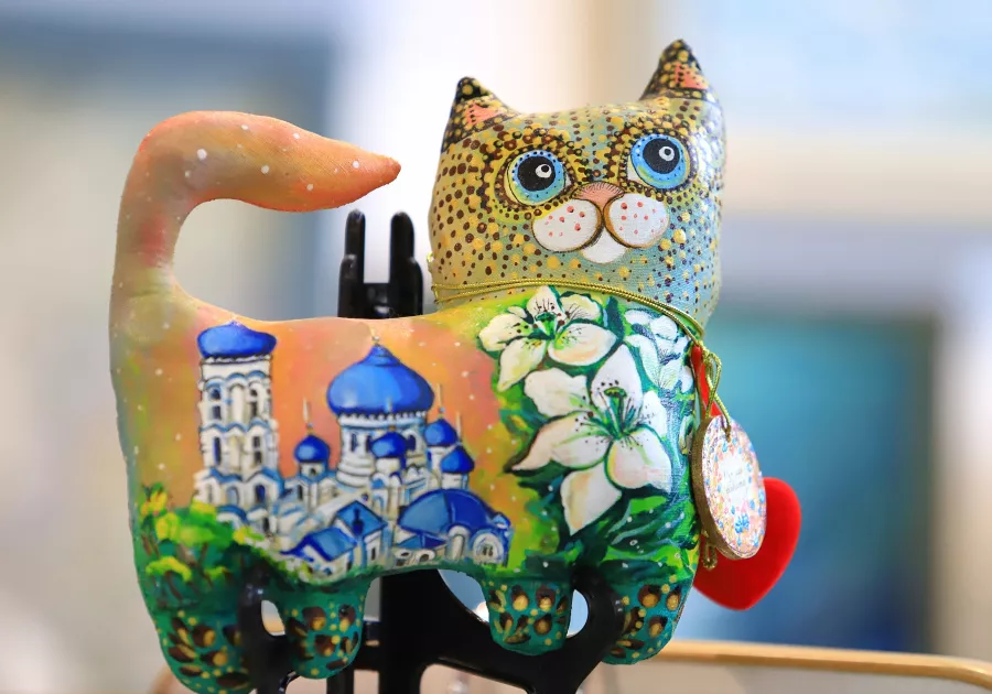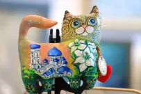 Расписная глиняная копилка в виде награжденного медалью кота с успенской церковью на боку это истинный шедевр декоративно-прикладного искусства ! И наверное довольно дорого стоит, мне наверняка не по карману.