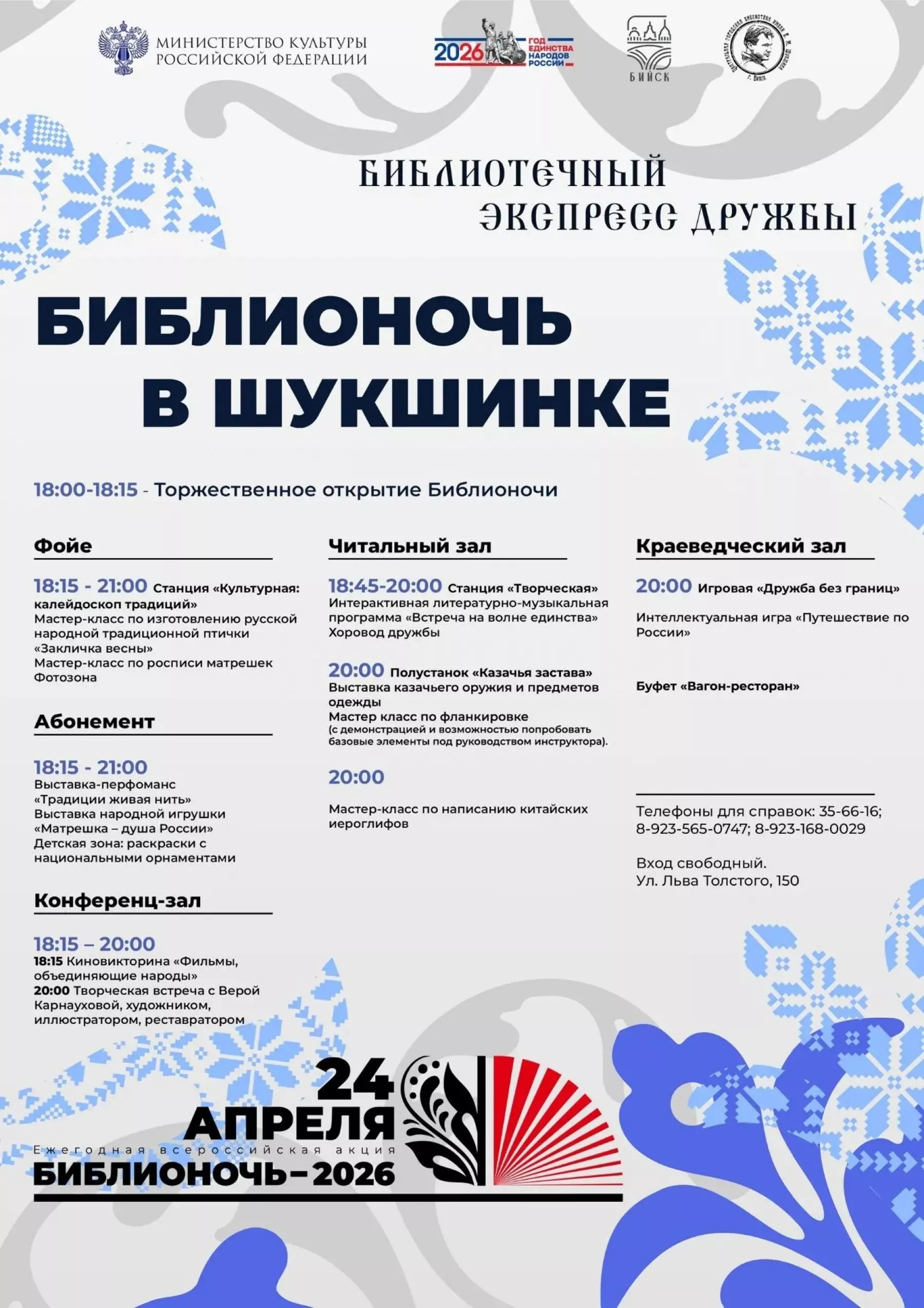 Центральная городская библиотека им. Шукшина в Бийске приглашает всех желающих на яркое культурное событие, которое пройдет 24 апреля.