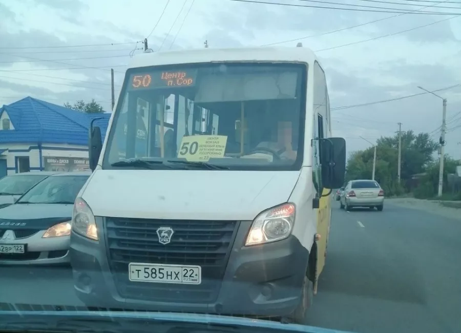 В соцсетях бийские автолюбители опубликовали фотографию маршрутного такси №50, водитель которого вылетел на полосу встречного движения, едва не устроив ДТП: