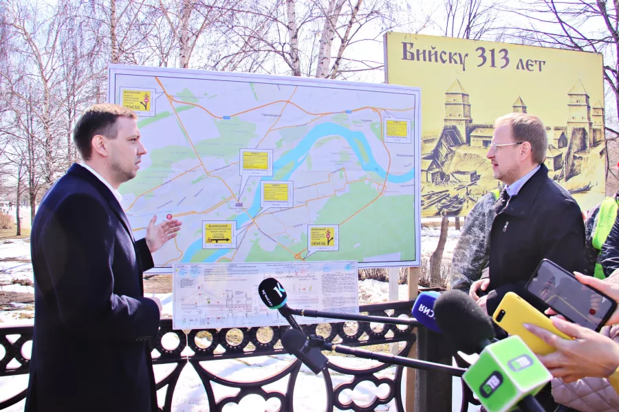 – Для того, чтобы сориентировать водителей, которые держат транзитом через Бийск, нужны информационные баннеры на подъездах к городу. И не один, а несколько. Кроме транзита, мост важен и для жизнедеятельности города. Горожане, для кого больше всего важна эта дорога, должны быть в курсе всех работ. Поэтому попрошу продумать вопрос об установке видеокамеры на нем, чтобы все желающие могли увидеть, как идут ремонтные работы. Не должно быть такого, что люди едут в объезд, стоят в пробках и видят, а работы на мосту не ведутся, – заметил глава региона.