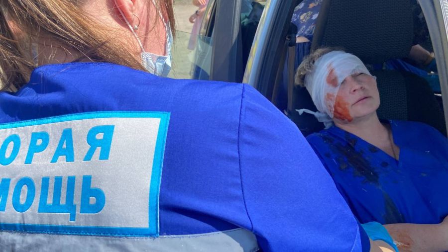 Практическое задание состояло в оказании помощи пострадавшим в ДТП. Борьба была активная и с отрывом всего в один балл победу одержали коллеги из Алтайского района - Олеся Богатырева и Алексей Новиков.