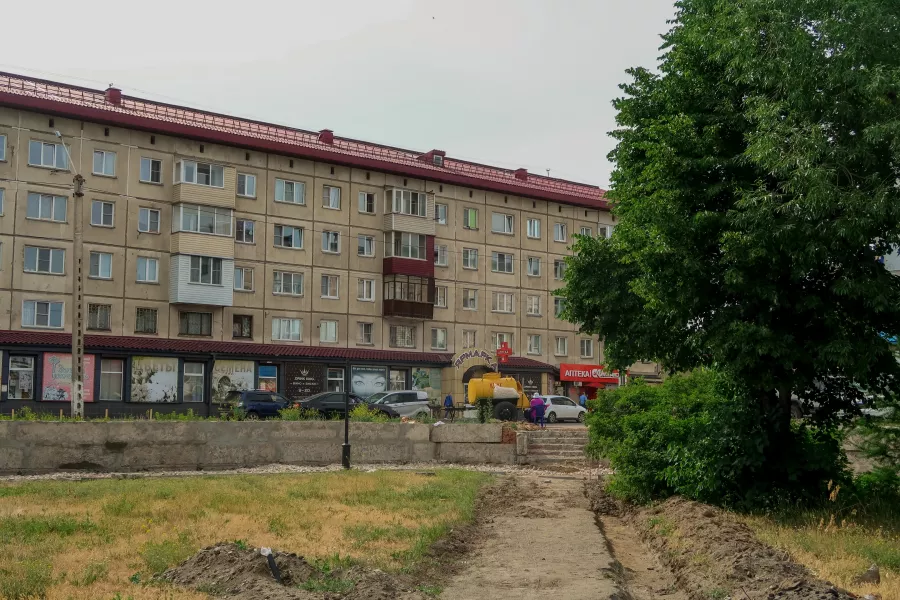 Аккуратными стопка в сквере разложена плитка, которая скоро станет основой дорожек, помимо нее будет и асфальт. Здесь будет удобно кататься детям, а для пожилых людей предусмотрены скамеечки в тени берез. Кстати, деревья никто не трогал, некоторым лишь слегка подпилили ветки, чтобы их не сломала строительная техника.