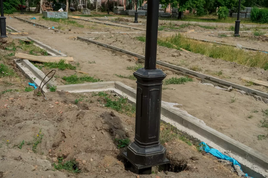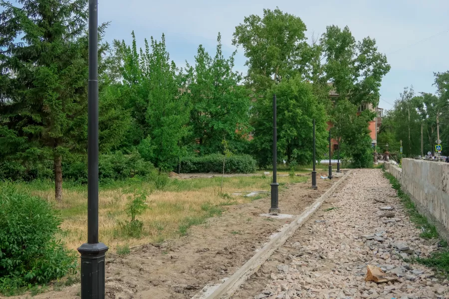 И действительно - дорожки уже отсыпаны, бордюры установлены крепко и аккуратно. Проведены коммуникации под землей, которые обеспечат свет во множестве новеньких фонарей.